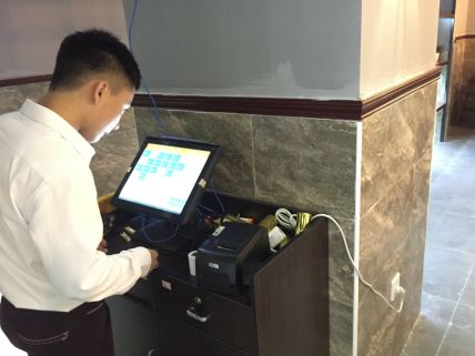 湘薈酒樓,是一家主打特色湘菜的酒樓,位于水口大湖溪瑞豪酒店一樓。該酒樓使用云帆科技的觸摸屏一體機和無線點菜寶下單,前臺用臺式電腦收銀,廚房配置了4臺出單機,涼菜出單,熱菜出單,蒸菜出單和傳菜口劃菜單。